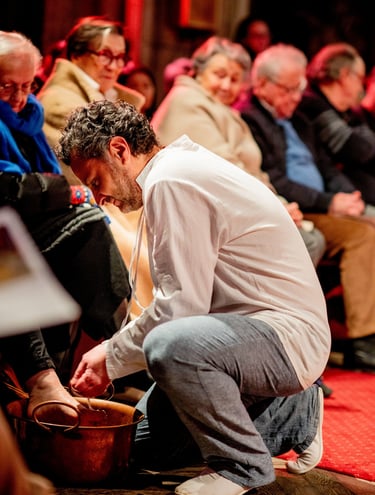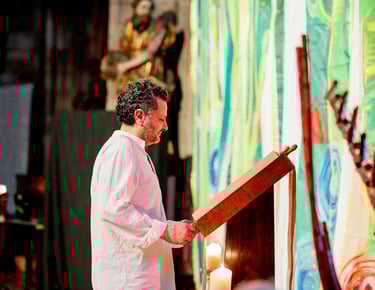 En octobre 2023, la troupe se constitue avec un porteur de projet, le Père Eric Jacquinet, 3 acteurs, et une metteur en scène, autour d’un projet de spectacle sur l’évangile de saint Jean.